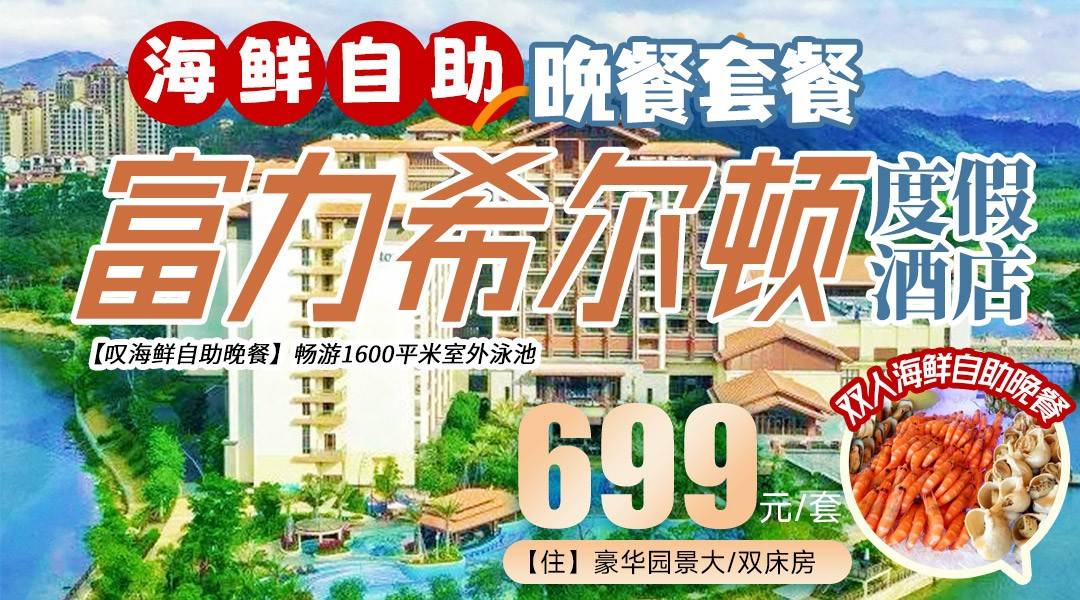 【寻味龙门】¥699住富力希尔顿,2大1小海鲜盛宴+皮划艇/浆板体验+400平温泉泳池放肆玩!含豪华园景房+早餐+海鲜自助晚+丰富康乐体验~