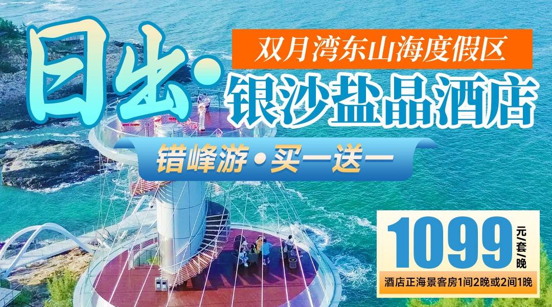 【爆款买一送一】周末不加收+全年可用!¥1099住日出银沙盐晶酒店-正海景房1间2晚/2间1晚,含2大1小打卡日出情人湾、礁石酒吧+汤浴+旅拍