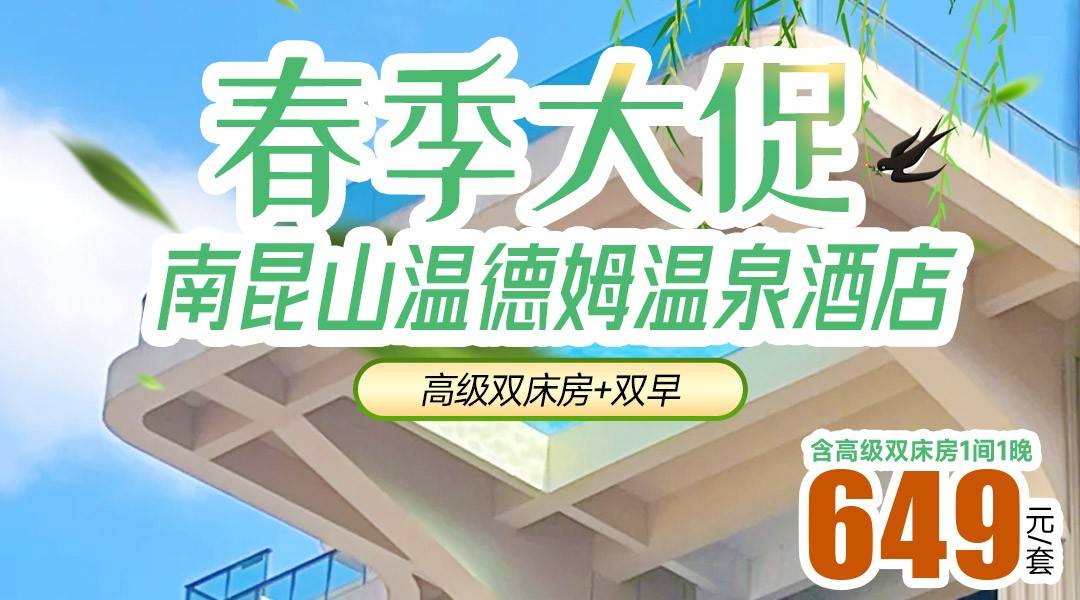 【南昆山温德姆3-4月春季大促】慵懒错峰春游~¥649起2大2小套票+赠送特色软饮2份!住高级双床房,含2大2小自助早餐+私家泡池+无边泳池+无限次温泉中心