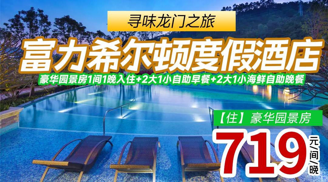 【寻味龙门】¥719住富力希尔顿,2大1小海鲜盛宴+皮划艇体验+400平温泉泳池放肆玩!含豪华园景房+早餐+海鲜自助晚+丰富康乐体验~